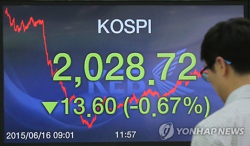(서울=연합뉴스) 김수진 기자 = 코스피가 16일 대외 변수에 대한 경계 심리가 확산되며 2,020선 후반으로 후퇴했다.