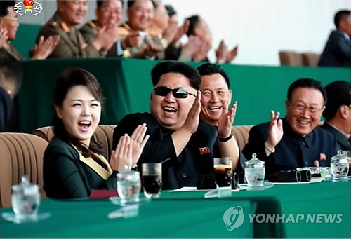 | △ 북한 김정은·리설주 부부, 축구관람 중 '박장대소'(연합뉴스 자료사진) |
