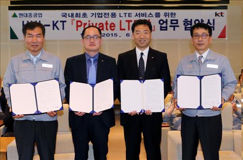 KT는 현대중공업과 울산조선소에 기업 전용 LTE 서비스를 상용화하기로 계약을 맺었다고 17일 밝혔다.