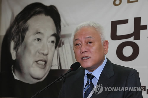 | △ 새정치민주연합 김한길 전 대표가 지난 해 11월 국회 의원회관에서 열린 당산 김철 선생 서거 20주년 기념 학술 심포지엄에서 인사말을 하고 있다. (연합뉴스 자료사진) |