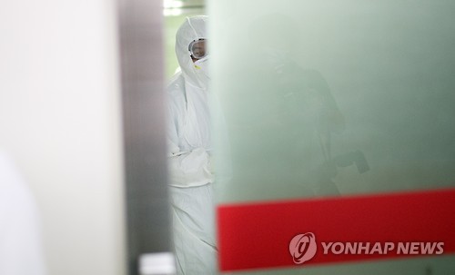| △ 한 메르스 치료 의료진이 통제구역 밖을 바라보고 있다. (연합뉴스 자료사진) |