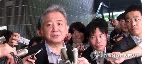| △ 이상덕 한국 외교부 동북아국장이 2015년 6월 11일 오후 일본 도쿄도(東京都) 지요다(千代田)구 소재 일본 외무성에서 일본군 위안부 문제 등을 논의하는 한국·일본 외교 당국 국장급 협의를 마치고 나오다 취재진에 둘러싸여 있다. |
