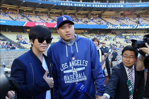 류현진은 이날 한국의 날 행사에서 미니 콘서트를 한 윤도현 밴드를 찾아 반갑게 악수했으며 레인저스 선수로 출장한 추신수와 만나 반갑게 포옹을 했다.
