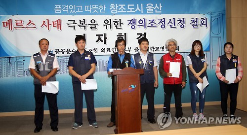 전국공공운수노동조합 의료연대본부 울산대학교병원분회는 18일 울산시청에서 기자회견을 열고 "전 국민의 건강에 막대한 영향을 미치고 있는 메르스 사태가 진정되지 않고 있어 사태 해결에 도움이 되고자 긴급 임시 대의원대회를 열어 조정신청을 철회하기로 결정했다"고 밝혔다.