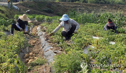 | △ "이제 해방이네요" 격리 해제 순창 장덕마을 (순창=연합뉴스) 백도인 기자 = 중동호흡기증후군(메르스) 환자 발생으로 14일동안 마을이 통째로 격리됐다가 19일 풀려난 전북 순창군 장덕마을 주민들이 아침 일찍 밭에 나와 감자를 캐고 있다. 주민들은 "감옥에서 풀려난 기분"이라고 말했다. doin100@yna.co.kr |