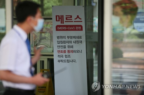 | △ 병원 출입 통제하는 보안요원 (서울=연합뉴스) 중동호흡기증후군(메르스) 확산 여파로 부분적인 병원 폐쇄조치가 내려진 서울 일원동 삼성서울병원에서 18일 오전 보안요원이 일반인의 출입을 통제하고 있다. |