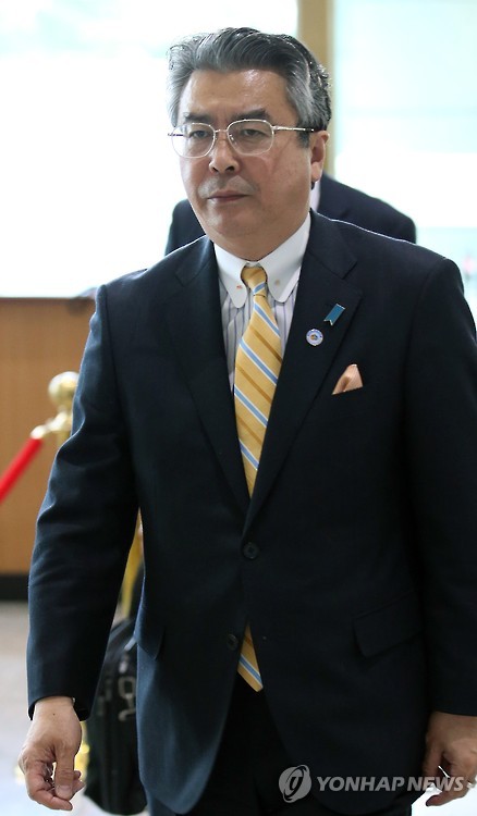 | △ 스기야마 日외무성 심의관 (서울=연합뉴스) 전수영 기자 = 한일 외교장관 회담(21일) 의제 조율 등을 위해 방한한 스기야마 신스케(杉山晋輔) 외무성 외무심의관(차관보급)가 19일 오후 서울 도렴동 외교부 청사에 들어서고 있다. |