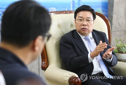 | △ 취임 1년 인터뷰하는 권선택 대전시장 (대전=연합뉴스) 이재림 기자 = 권선택 대전시장이 20일 대전시청에서 취임 1년을 맞아 연합뉴스와 가진 인터뷰에서 "공공의료 체계 구축을 강력히 추진하겠다"고 말하고 있다. 2015.6.20 walden@yna.co.kr |