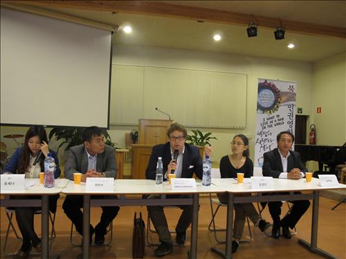 | △ (브뤼셀=연합뉴스) 송병승 특파원 = 벨기에 브뤼셀에서 19일 열린 북한인권토론회에서 패널들이 참석자들의 질문에 답변하고 있다. |
