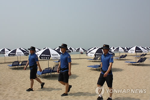 | △ 여름경찰서 직원들의 해수욕장 백사장 순찰(연합뉴스 자료사진) |