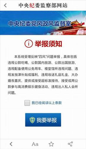 기율검사위는 휴대전화 웹사이트에 통지를 통해 신고자들이 내용을 거를 수 있고 처리에서 효율성을 제고하기 위해 신고접수 대상을 세분화했다.