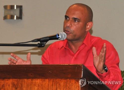 | △ 아이티 대통령 선거 후보로 등록했다가 자격을 박탈당한 로랑 라모트 전 총리가 지난 5일 기자회견에서 음모설을 제기하고 있다.(EPA=연합뉴스DB) |