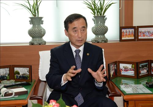 | △ 박영철 울산시의회의장이 연합뉴스와 인터뷰하고 있다. |