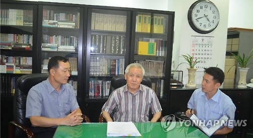 | △ 6·25 참전 '소년병' 류형석 씨 (서울=연합뉴스) 6·25 전쟁이 발발한 1950년 16세의 나이로 자원 입대해 북한군과 싸운 류형석(81·가운데) 씨. 사진은 지난해 7월 류 씨가 육군 관계자들과 인터뷰하는 모습. 2015.6.22 photo@yna.co.kr |