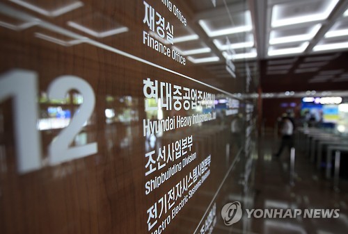 | △ 214급 잠수함 비리의혹, 현대중공업 압수수색 (서울=연합뉴스) 홍해인 기자 = 방위사업비리 정부합동수사단이 22일 해군 214급(1천800t·KSS-Ⅱ) 잠수함 인수평가 비리 의혹과 관련해 서울 계동 현대중공업 사옥을 압수수색했다. 사진은 이날 오후 계동 사옥 로비 모습. |