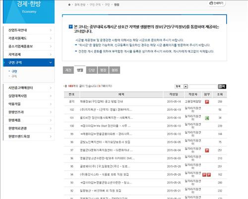 제천시는 2011∼2014년 홈페이지 빅데이터 분석 결과, 구인·구직 검색 빈도가 가장 많은 점에 주목해 폭넓은 정보 제공을 위해 중부내륙중심권 행정협력회 공동사업으로 통합서비스 구축을 제안했다.