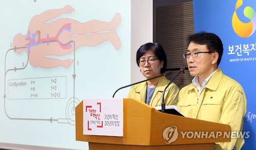| △ 기자들 질문에 답하는 권덕철 총괄반장 (세종=연합뉴스) 배재만 기자 = 권덕철 중앙메르스대책본부 총괄반장(오른쪽)이 21일 오전 정부세종청사 보건복지부에서 열린 정례 브리핑에서 중동호흡기증후군(메르스) 현황에 대해 설명한 뒤 기자들의 질문에 답하고 있다. 왼쪽은 정은경 현장점검반장. 2015.6.21 scoop@yna.co.kr http://blog.yonhapnews.co.kr/f6464 |