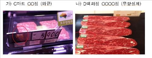 H마트의 한 지점은 일본 육우 품종인 '와규'가 아닌 제품에 '와규'라고 표시해 경고와 함께 과태료 40만원의 처분을 받았다.