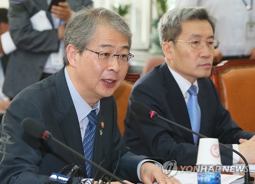 | △ 서민금융지원 강화 방안 보고하는 임종룡 (서울=연합뉴스) 진성철 기자 = 임종룡 금융위원장이 23일 국회에서 열린 서민금융지원 강화 방안 당정협의에서 보고하고 있다. 오른쪽은 고승범 금융위 사무처장. |