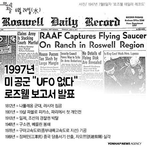 (서울=연합뉴스) 1997년 6월24일 미 공군이 231쪽짜리 보고서를 발표했다. 보고서의 제목은 '로즈웰 보고서, 사건 종결'(The Roswell Report, Case Closed).