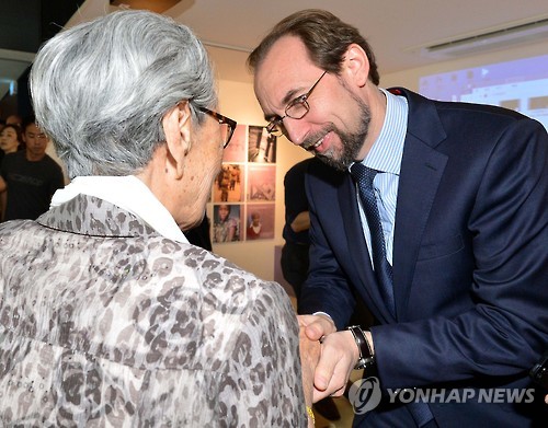 전날 문을 연 유엔북한인권사무소 개소식 참석을 위해 방한 중인 자이드 최고대표는 이날 한국정신대문제대책협의회(정대협)가 운영하는 서울 마포구 '전쟁과여성 인권박물관'을 찾아 김복동, 길원옥, 이용수 할머니 등 3명의 일본군 위안부 피해자와 면담했다.
