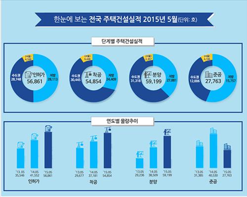 국토부 관계자는 "신규 주택시장이 호조를 보이면서 올해 1월 이후 주택 인·허가 증가세가 계속되고 있다"며 "5월 증가폭도 작년 동월 대비 20.2%였던 4월보다 16.6%포인트 컸다"고 말했다.