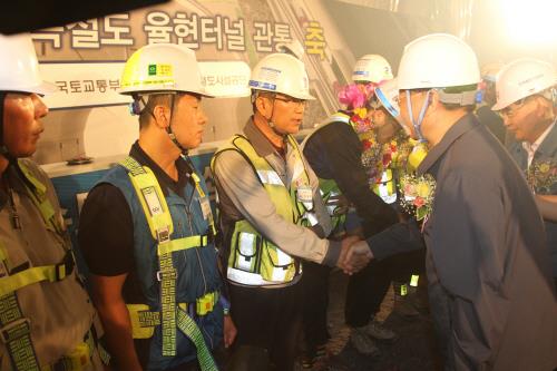 관통식에 참석한 유일호 국토교통부 장관은 "고난도 건설사업을 차질없이 추진하는데 고생이 많았다"며 공사 관계자들을 격려하고 "공사가 끝나는 날까지 한 건의 안전사고도 없이 마무리해 달라"고 당부했다.