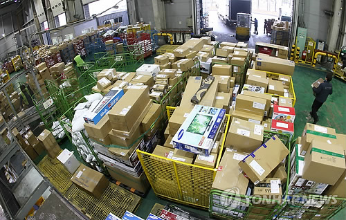| △ 인천 중구 운서동 인천공항세관검사장에 국내 쇼핑객들이 해외 직접구매로 들여온 물품들이 쌓여 있다. (연합뉴스 자료사진) |