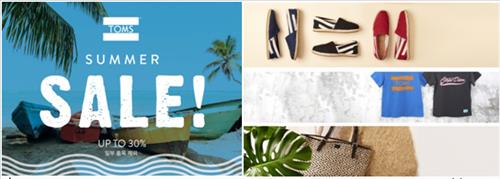 여성스럽고 시원한 디자인으로 매 시즌마다 인기가 높았던 크로쉐 클래식, 탐스의 스테디셀러 유니버시티 클래식 등이 30% 저렴한 가격에 나오고, 여름 시즌 신상품 일부도 세일에 들어간다.