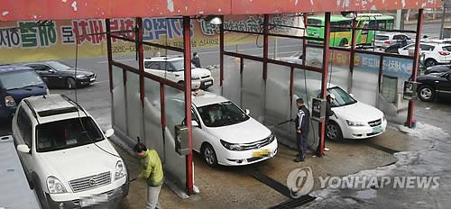 | △ 서울 성동구의 한 셀프주차장에서 시민들이 세차를 하고 있다. 2013.1.13 <연합뉴스 자료사진> |