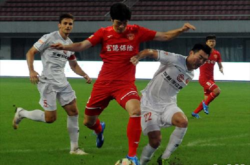 | △ (선양=연합뉴스) 홍창진 특파원 = 연변조선족자치주에 기반한 중국 프로축구 연변FC가 올시즌 14경기 무패행진을 벌이면서 동포사회의 구심 역할을 하고 있다. 사진은 연변FC 공격수 하태균 선수(사진 왼쪽에서 두 번째 빨간 유니폼)가 골을 다루는 장면. <출처 길림신문> realism@yna.co.kr |