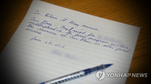 | △ (밴쿠버=연합뉴스) 조재용 통신원 = 돈가방을 경찰에 신고한 사연에 감동한 주민들이 온라인으로 모금한 성금도 마다한 캐나다 빅토리아의 노숙자가 이 성금을 불우 시설에 기부해 줄 것을 요청해 화제가 되고 있다. 기부 방법을 구체적으로 밝혀 경찰에 보낸 그의 편지. 2015.6.26 <<CBC 홈페이지 화면 캡처>> jaeycho@yna.co.kr |