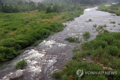 | △ 물 흐르는 속초 쌍천…제한급수 해제 (속초=연합뉴스) 이종건 기자 = 26일 속초지역에 비가 내리면서 가뭄으로 바닥을 드러냈던 쌍천에 제법 많은 물이 흐르고 있다. 이번 비로 물 부족 문제가 해소되면서 속초시는 지난 17일부터 시행해온 제한급수를 해제했다. |