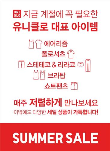 (서울=연합뉴스) 고유선 기자 = 제조·유통일괄형(SPA)브랜드 유니클로(UNIQLO)는 26일부터 7월 19일까지 속옷과 상·하의 등 매주 다양한 제품을 할인 판매하는 '2015 여름 세일'을 진행한다고 밝혔다.