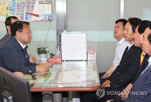 | △ (서울=연합뉴스) 유일호 국토교통부 장관이 27일 오전 서울 강서구 한 공인중개사무소를 찾아 최근 전·월세 시장에 대한 공인중개사들의 의견을 듣고 있다. 2015.6.27 << 국토교통부 >> photo@yna.co.kr |