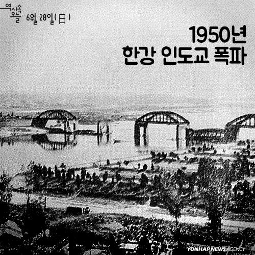 (서울=연합뉴스) 한국전쟁 발발 사흘만인 1950년 6월28일 새벽, 유일하게 한강을 걸어서 건널 수 있는 다리인 인도교(현 한강대교)가 폭파됐다. 다리를 건너던 4천여명 중 800여명이 그 자리에서 숨졌다.
