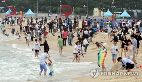 지난 1일 조기 개장했지만 메르스 사태로 파리를 날렸던 부산 해운대해수욕장에는 28일 지난주 일요일(3만5천명)보다 1만5천명 많은 5만여 명의 나들이객이 찾았다. 이날 부산시내 3개 해수욕장을 찾은 인파만 7만5천명으로 집계됐다.