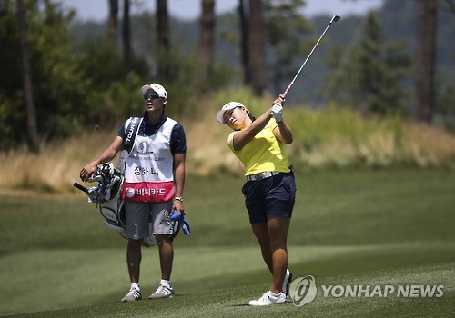 | △ 아이언 샷하는 장하나 (서울=연합뉴스) 장하나가 28일 경기도 안산 아일랜드 리조트에서 열린 한국여자프로골프(KLPGA) 투어 비씨카드·한경 레이디스컵 마지막날 4라운드 7번홀에서 아이언 샷을 하고 있다. 2015.6.28 << KLPGA 제공 >> photo@yna.co.kr |