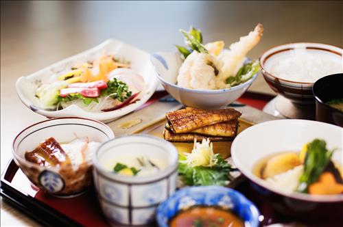 참치 연어롤 전채·삶은 계란·모둠 사시미(참치, 넙치, 도미)·장어구이·찜요리(고구마, 버섯, 두릅 등)·간장소스 쇠고기 구이·모둠 튀김(장어, 새우, 단호박, 고무마, 갓)·문어 새우 오이 초무침 등으로 구성됐다.
