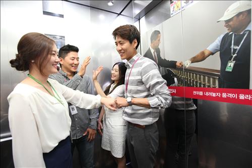 (서울=연합뉴스) 이유미 기자 = LG생활건강은 직장 동료 간에 즐거운 인사문화 정착을 위해 이색 엘리베이터 인사 캠페인을 하고 있다고 29일 밝혔다.