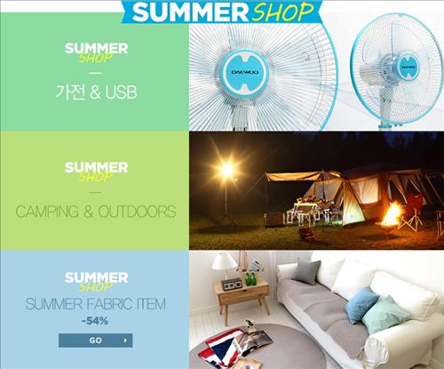썸머샵에서는 여름철 생활용품과 휴가철 캠핑·아웃도어제품, 유아용품 등 다양한 상품을 내놓는다.