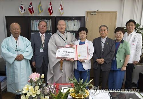 (서울=연합뉴스) 김희선 기자 = 한국종교지도자협의회(대표 자승 스님)의 종교 지도자들이 29일 오후 국립중앙의료원을 방문해 중동호흡기증후군(메르스) 환자를 치료하는 의료진을 격려했다.