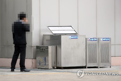 출입구 옆에는 스테인리스 재질의 공용 재떨이 3개가 설치돼 있었고, 재떨이마다 2∼3명이 모여 담배를 피우고 있었다.