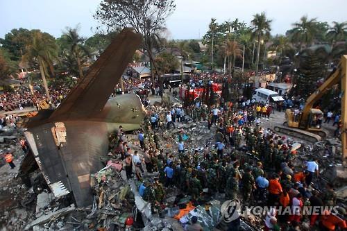 (하노이=연합뉴스) 김문성 특파원 = 30일(현지시간) 인도네시아에서 3번째로 큰 도시인 북수마트라 주 메단은 자국 공군 수송기의 추락으로 아비규환을 방불케 했다.