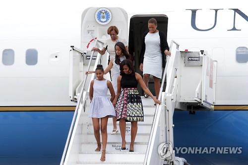 유럽 방문에는 두 딸 말리아(16)·사샤(14)와 친정어머니 마리안 로빈슨 여사가 동행했다.
