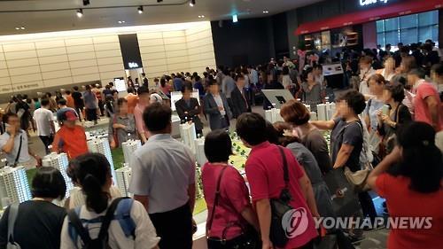 (청주=연합뉴스) 박재천 기자 = 전매 제한이 없는 민간 택지 내 아파트인 청주 호미지구 우미린 아파트가 청약 접수 첫날 신청자들이 몰려 새벽까지 북새통을 이뤘다.
