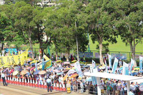 1997년 주권반환 이후 매년 7·1대행진을 주최한 시민단체 민간인권진선(民間人權陣線·민진)은 이날 행진에 10만 명이 참가할 것으로 기대했지만, 실제 참가자 수는 예상치에 못 미칠 것으로 관측되고 있다.