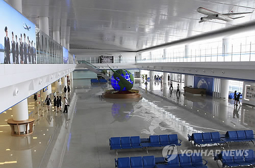 | △ 평양 순안국제공항 신청사 내부 (평양 AP=연합뉴스) 1일 준공된 북한 평양 순안국제공항 신청사에서 공항 관계자들이 내부를 둘러보고 있다. marshal@yna.co.kr |