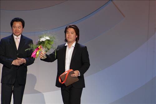 | △ (모스크바=연합뉴스) 유철종 특파원 = 바리톤 유한승이 1일(현지시간) 차이콥스키 국제콩쿠르 수상자 발표에서 남자 성악 부문 3위에 오른 뒤 상패와 꽃다발을 받고 있다. |