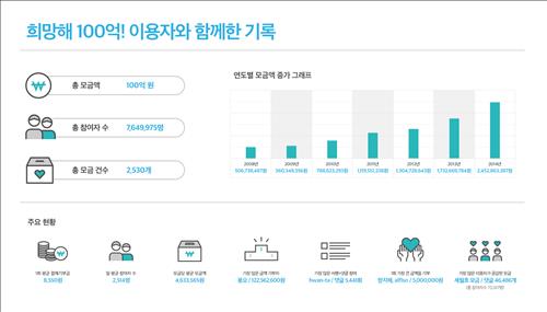 서비스 첫해인 2008년 약 5억원의 모금을 달성한 데 이어 2010년 7억 8천만원, 2011년 11억원, 2012년 13억원, 2013년 17억원, 2014년 24억원 등 연평균 약 30%의 증가세를 보였다.